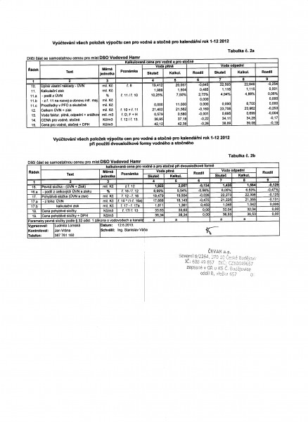 Vyúčtování vodného a stočného za rok 2012