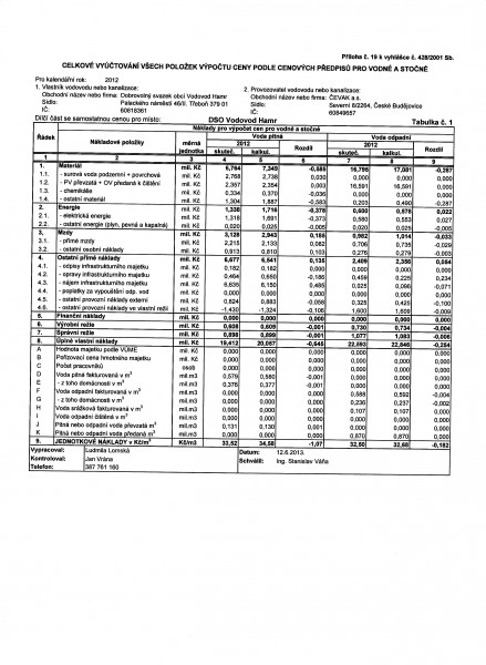 Vyúčtování vodného a stočného za rok 2012