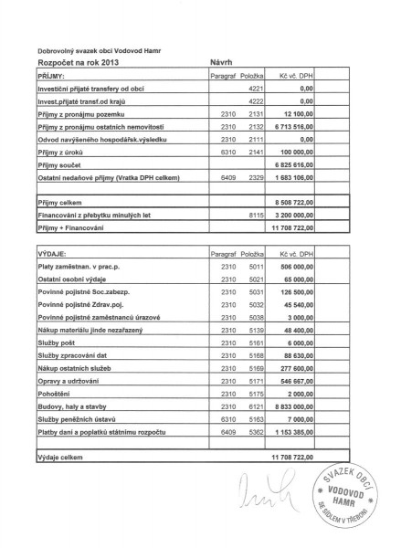 Rozpočet DSO Hamr